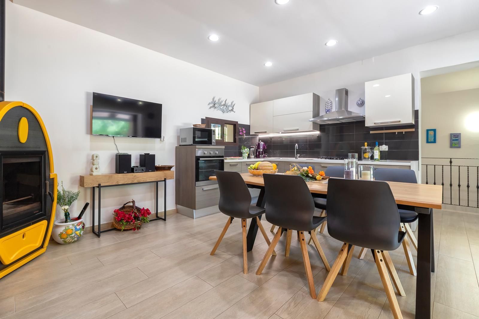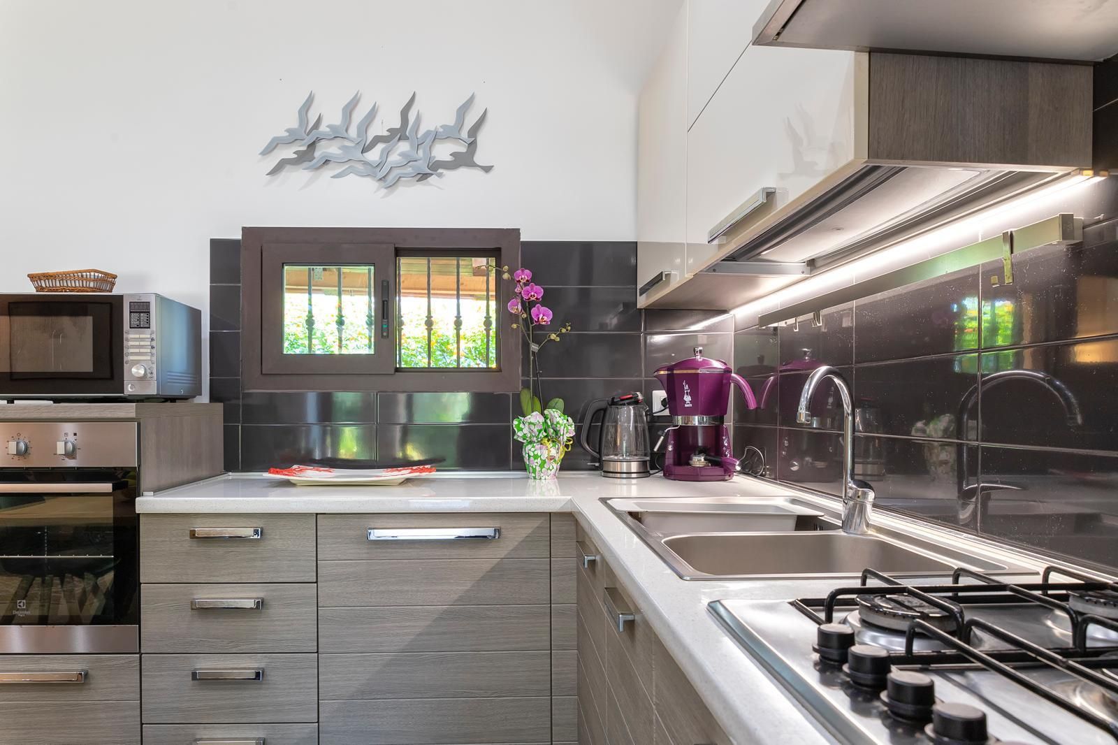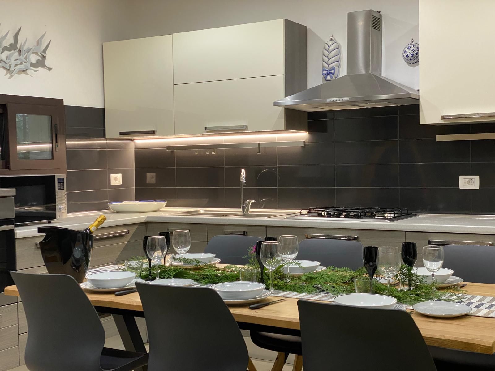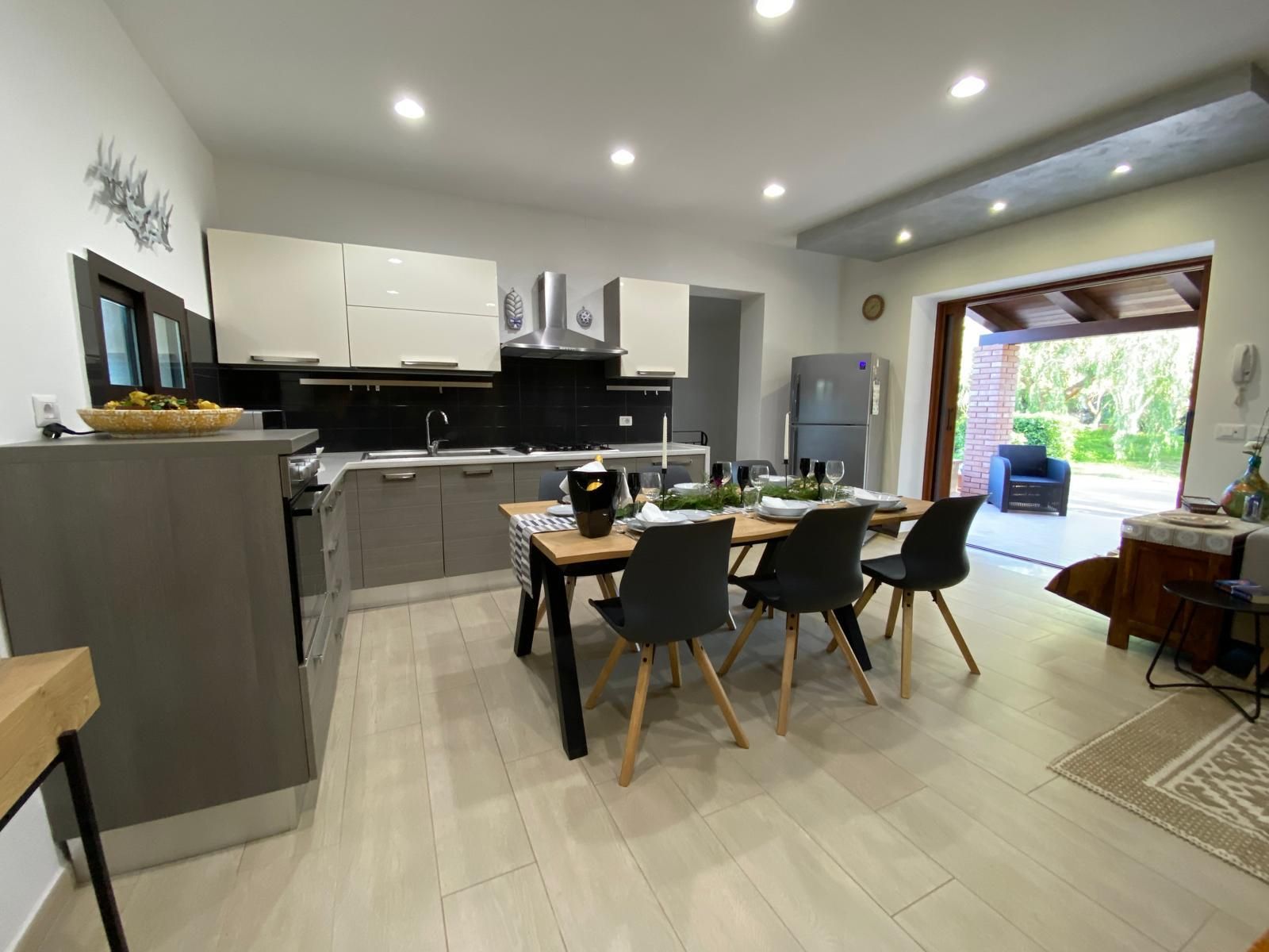 Al piano terra spazioso soggiorno con TV satellitare e digitale terrestre, impanto audio stereo, Wi-Fi, cucina attrezzata con piano cottura 5 fuochi a gas, forno elettrico ventilato, forno microonde, lavatrice, lavastoviglie, bollitore, macchian per caffe'. Nel piano è presente un bagno con doccia, una camera da letto matrimoniale con bagno in camera, una seconda camera da letto matrimoniale. Nel piano seminterrato si trova un open space relax, una camera da letto matrimoniale con bagno in camera fornito di doccia. Tutti i bagni sono forniti di asciugacapelli. Tutte le camere sono fornite di condizionatore tranne l'open space.
