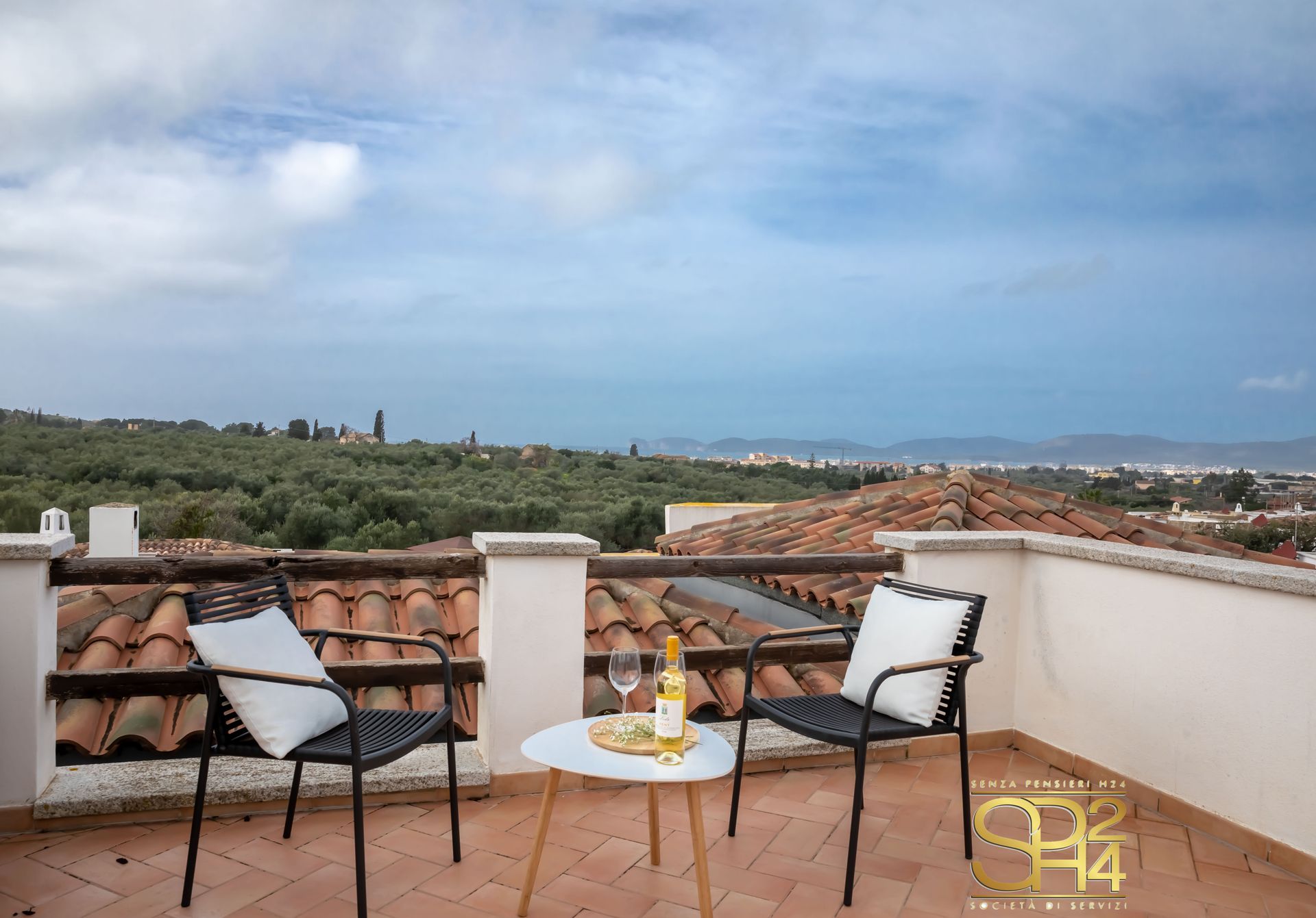 All’esterno, gli ospiti possono vivere appieno il fascino della location grazie alla splendida veranda coperta, ideale per pranzi e cene all’aperto, e a un meraviglioso solarium panoramico da cui ammirare una vista incantevole sul Golfo di Alghero, perfetto per rilassarsi al sole o godersi i colori del tramonto.